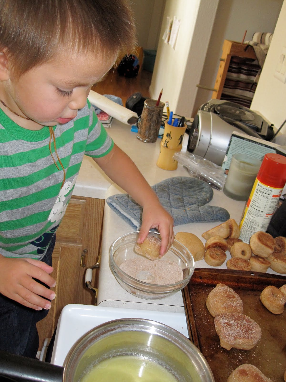 Also a pic of Mahonri and his new favorite thing to do... climb up the stool and get into something. We have now put this stool away because it got to dangerous!